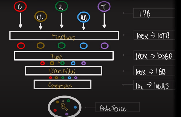 Figure 6 - Humio's Techniques to Radically Reduce the Amount of Data Queried and Retrieved